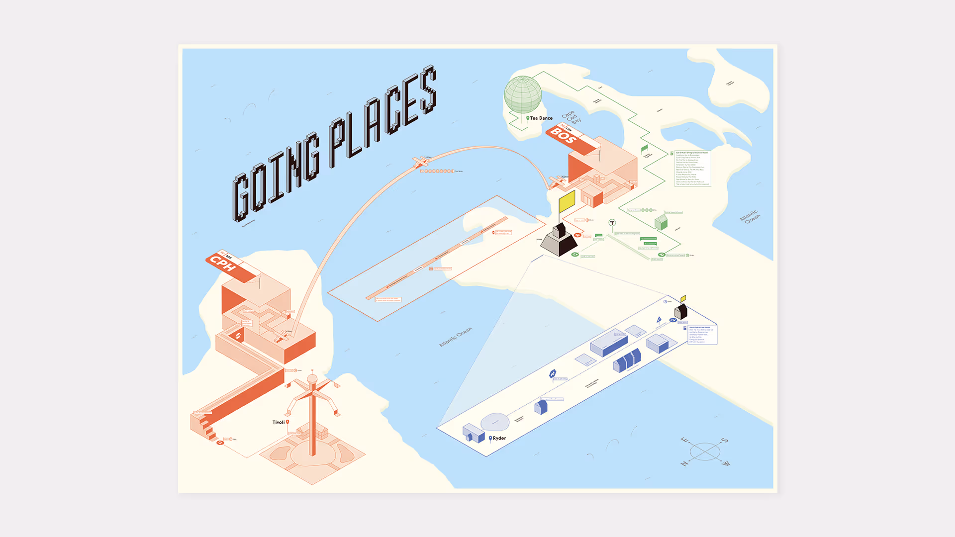 This is a geographic map of 3 important trips in my life. It incorporates a wide variety of visualized data.